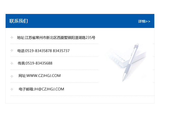 傳真:0519-83435688    郵編:213135    網址:WWW.czjhgj_com.lovesf123.com    電子郵箱:JH@czjhgj_com.lovesf123.com